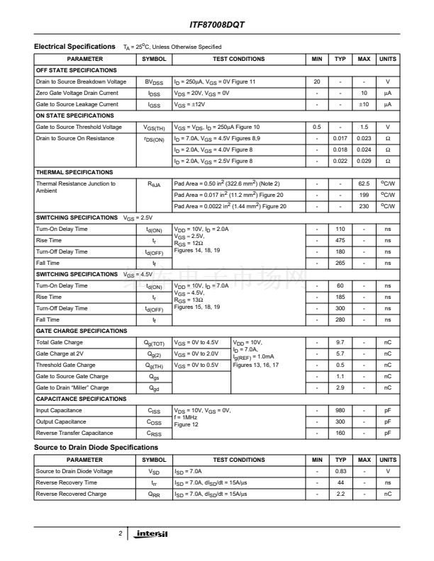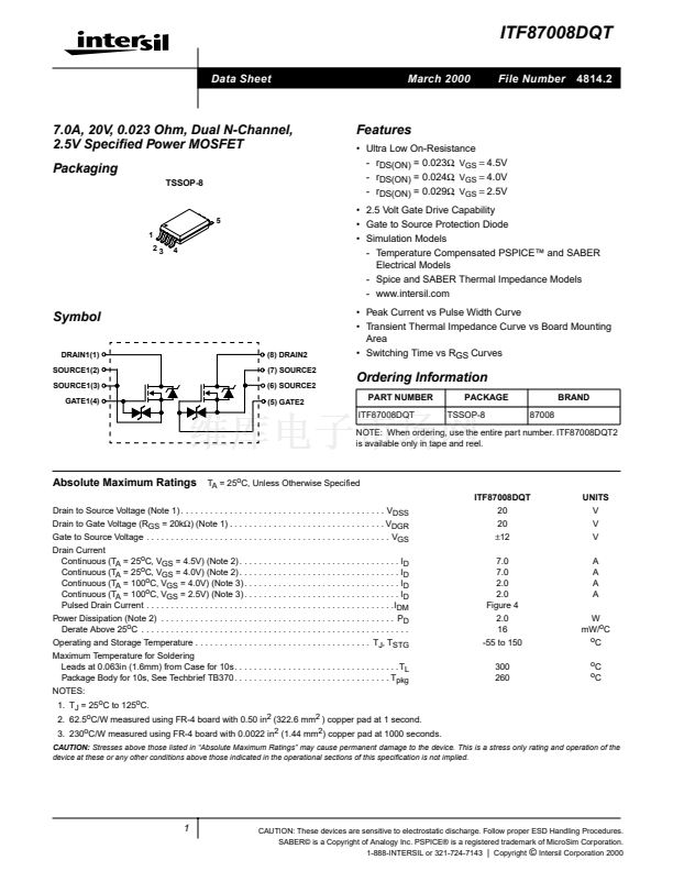 NOTE: When ordering, use the entire part number. ITF87008DQT2