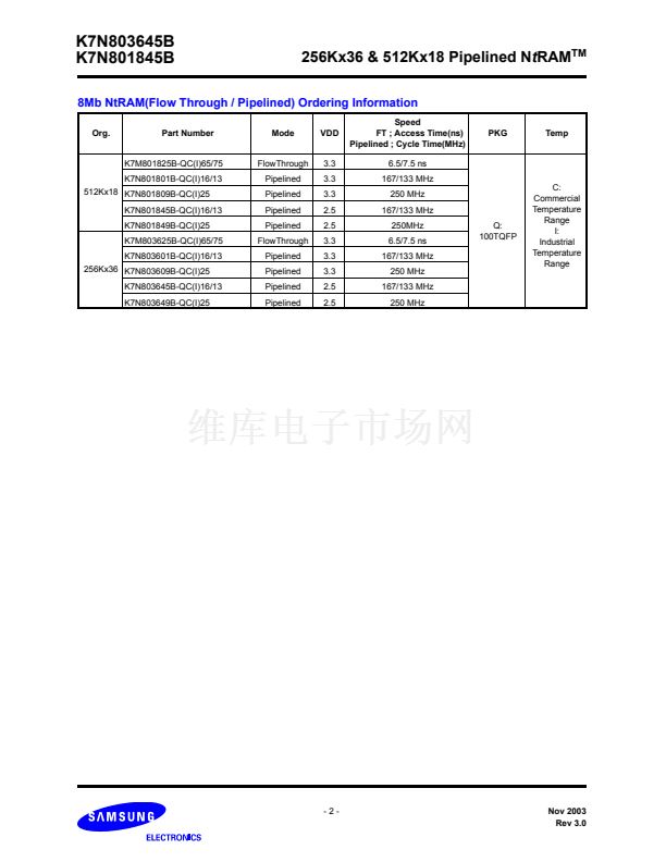 Change ordering information( remove 225MHz at Nt-Pipelined)