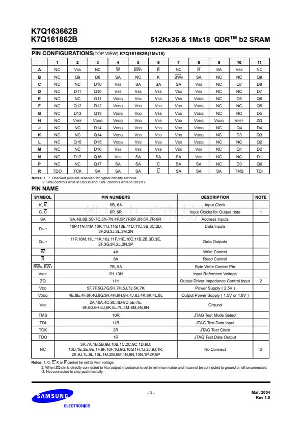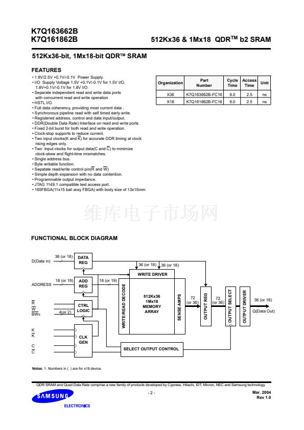 512Kx36-bit, 1Mx18-bit QDR