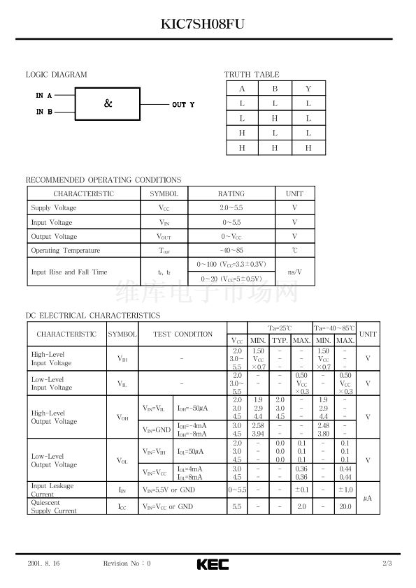 KIC7SH08FU Datasheet