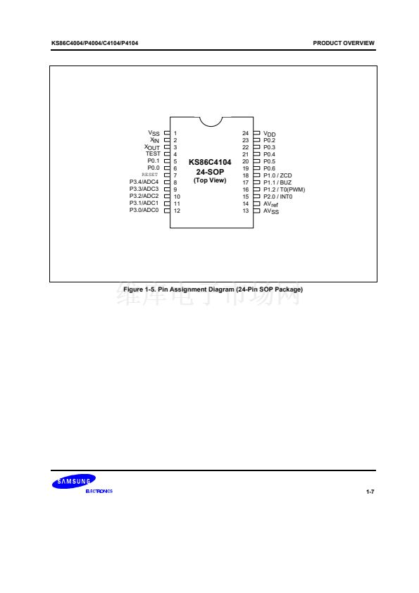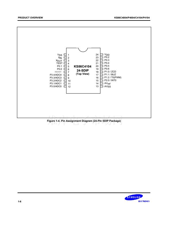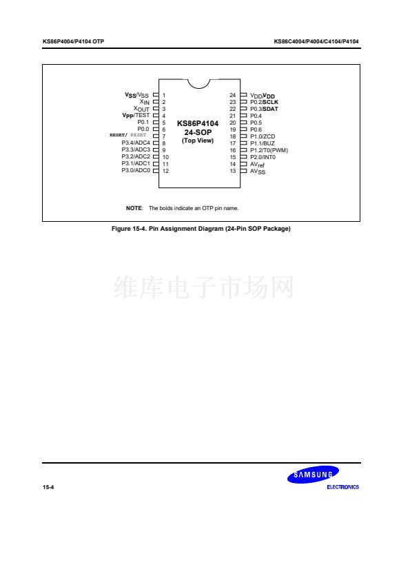 SOP package. KS86C4104 is available in a 24-pin SDIP and a 24-pin SOP package.