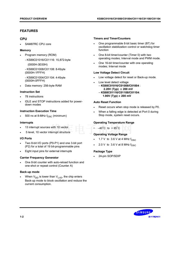 The KS88C01016/C01008/C01004/C01116/C01108/C01104 is a versatile general-purpose microcontroller