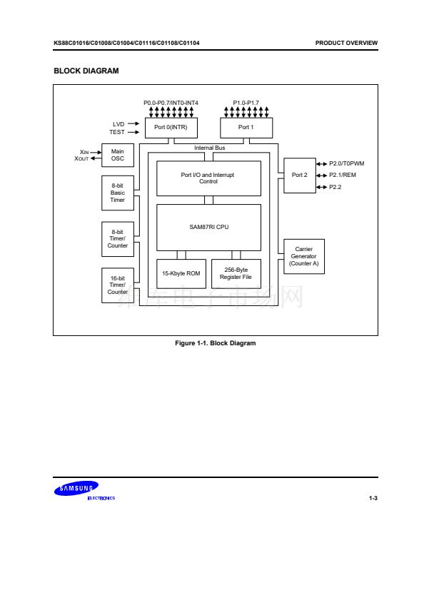 Samsung's KS88 series of 8-bit single-chip CMOS microcontrollers offers a fast and efficient CPU, a wide range