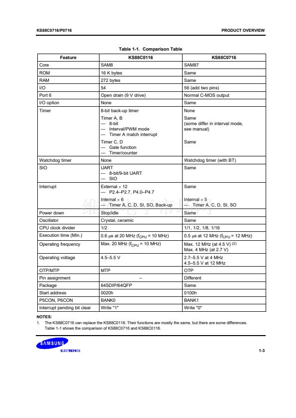 The KS88P0716 is comparable to KS88C0716, both in function and in pin configuration.