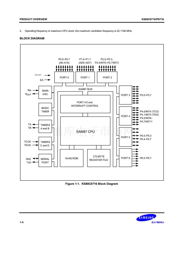 KS88C0716/P0716 single-chip 8-bit microcontrollers are based on the powerful SAM87 CPU architecture. The