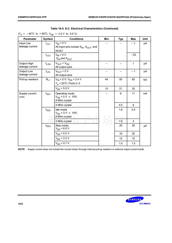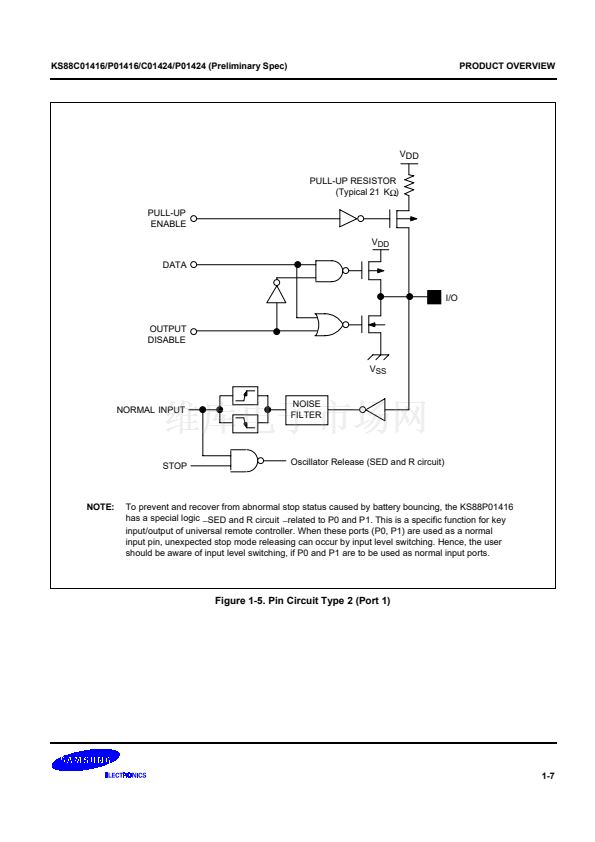 EPROM instead of a masked ROM. The KS88P01416/P01424 is comparable to the KS88C01416/C01424, both