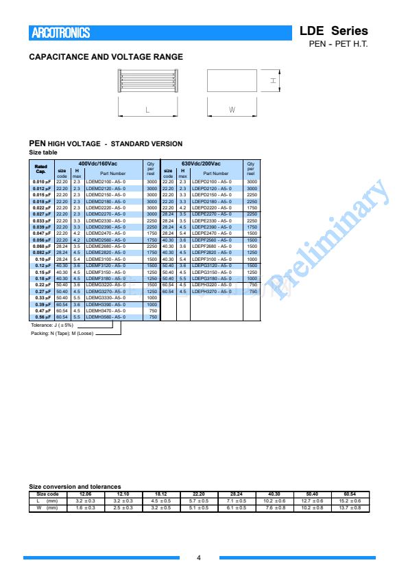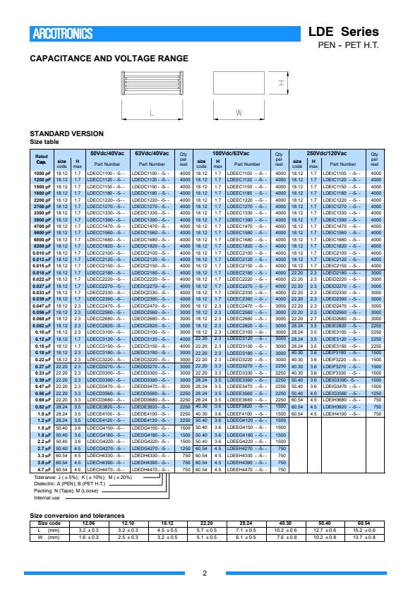 C = 50Vdc D = 63Vdc E =100Vdc