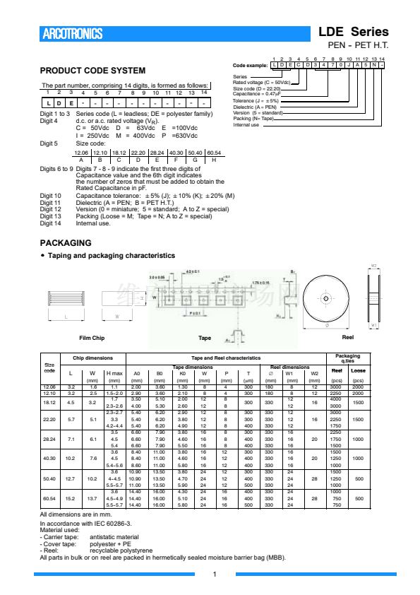 Digit 1 to 3 Series code (L = leadless; DE = polyester family)