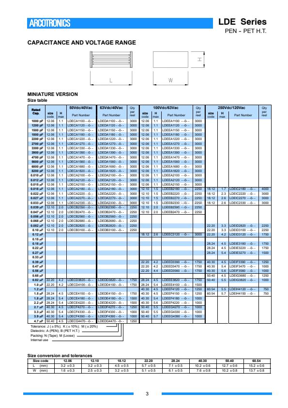C = 50Vdc D = 63Vdc E =100Vdc