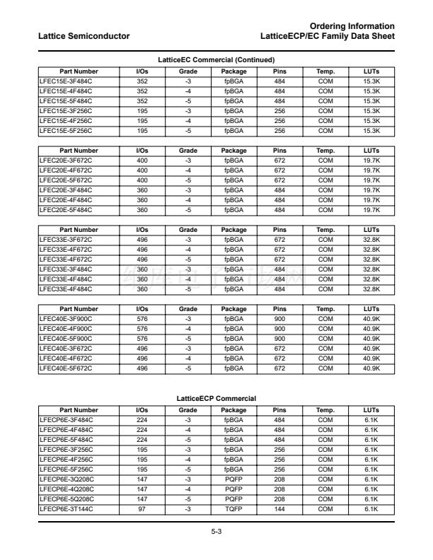 LatticeECP/EC Family Data Sheet