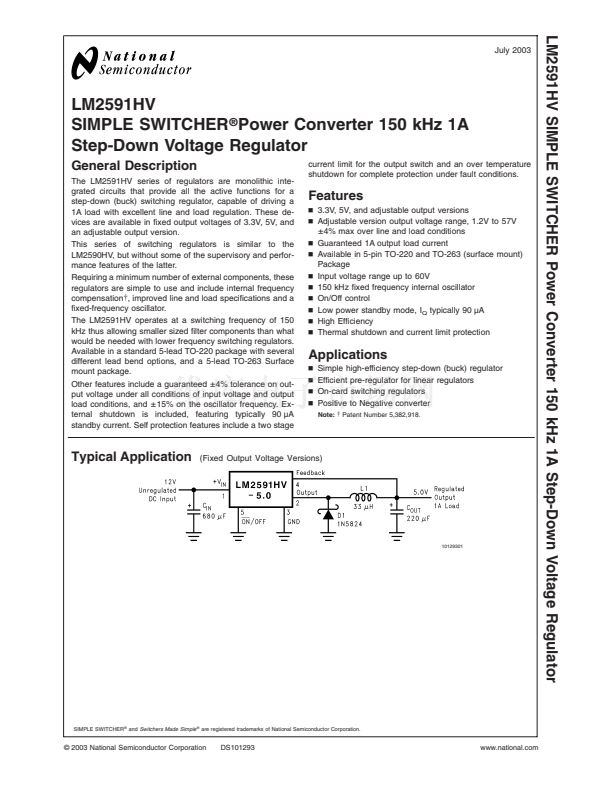 LM2591HVT-5.0 Datasheet