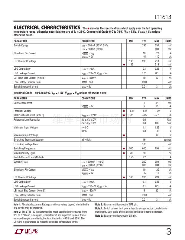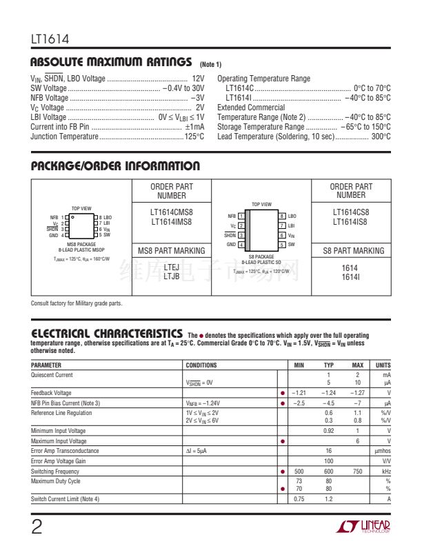 to less than 10碌A(chǔ). No load quiescent current of the LT1614