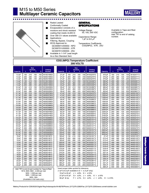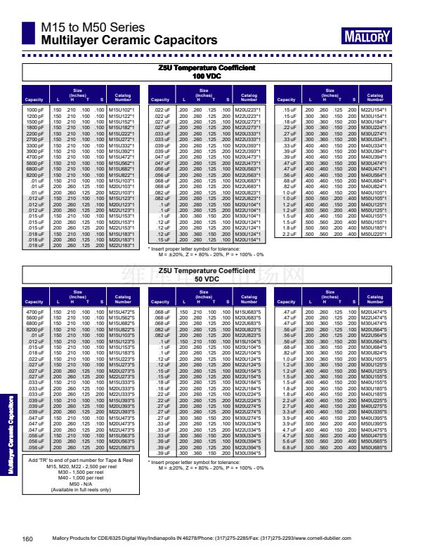 Mallory Products for CDE/6325 Digital Way/Indianapolis IN 46278/Phone: (317)275-2285/Fax: (317)275-2293/www.cornell-dubilier.com