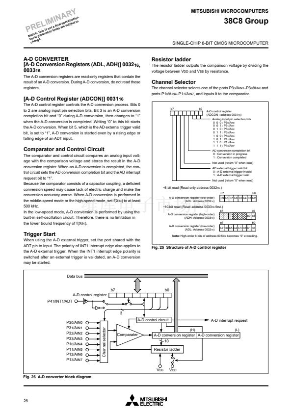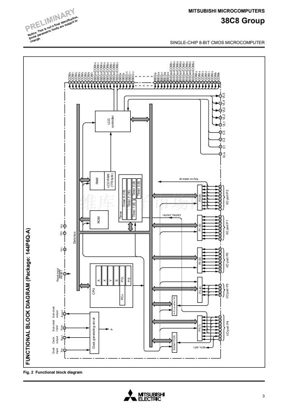 The 38C8 group is the 8-bit microcomputer based on the 740 family