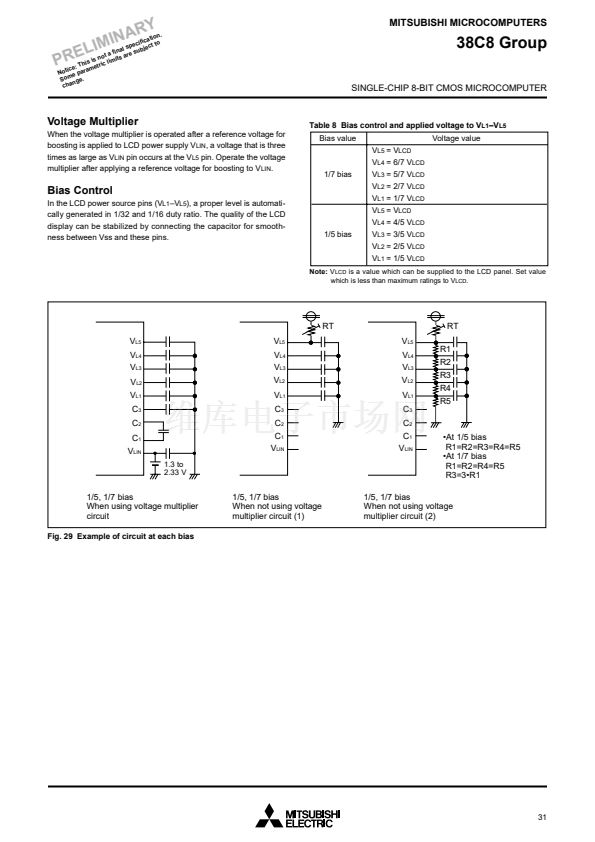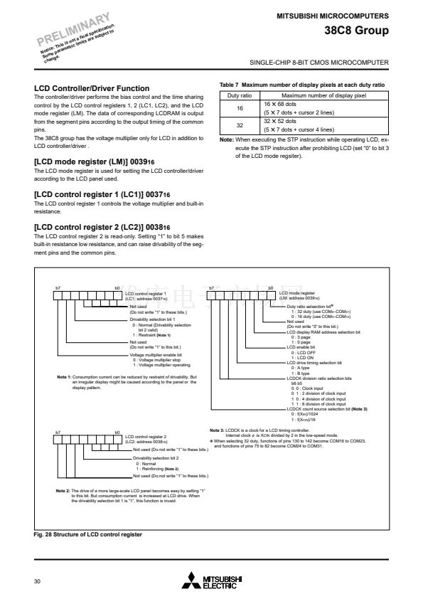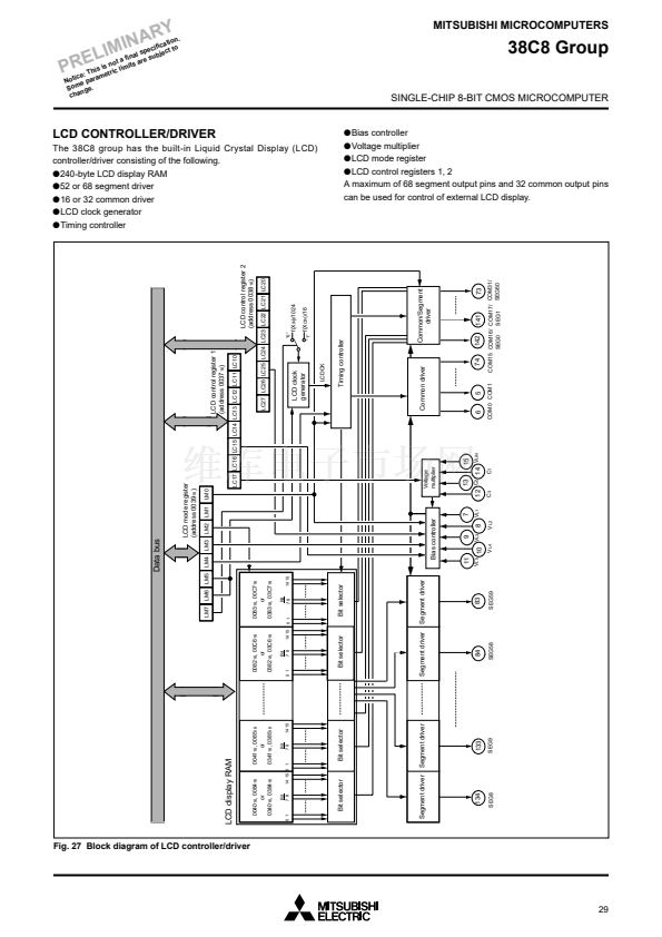 The 38C8 group has a LCD drive control circuit (bias control, time