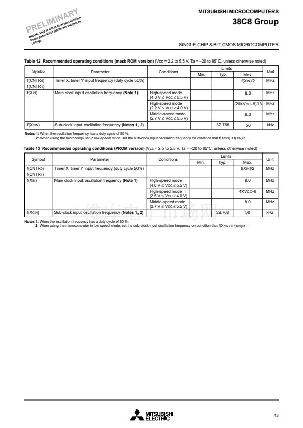 (at 8 MHz oscillation frequency)