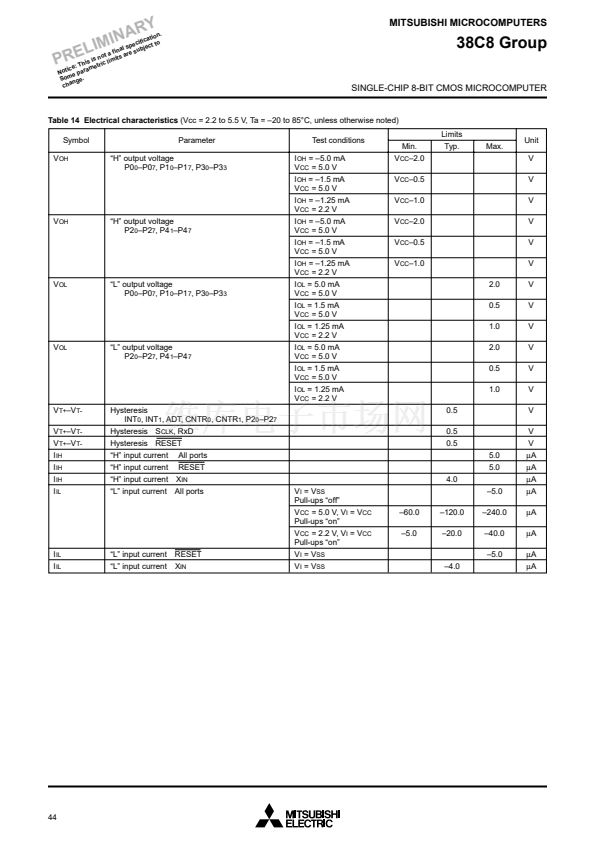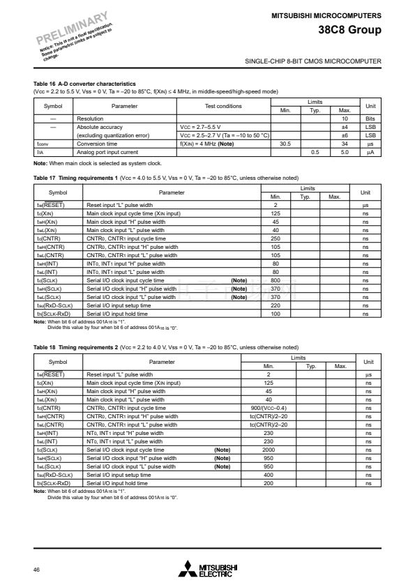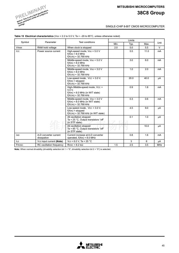 (at 8 MHz oscillation frequency, at 5 V power source voltage)