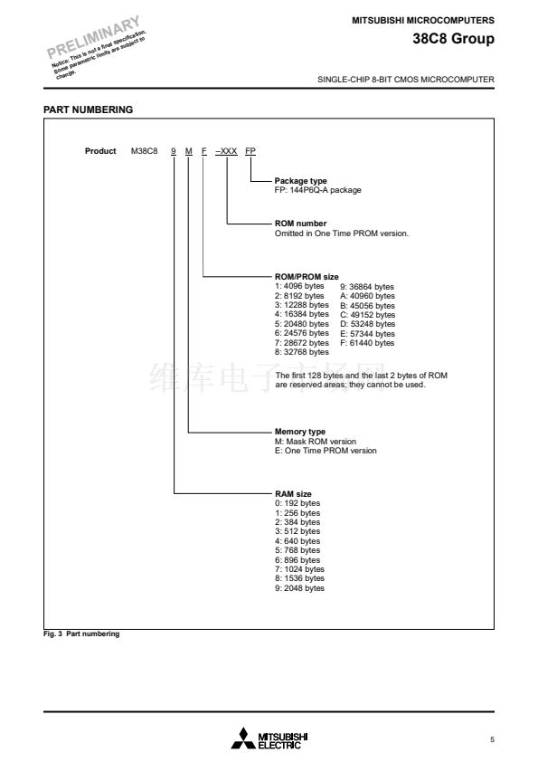 The various microcomputers in the 38C8 group include variations of