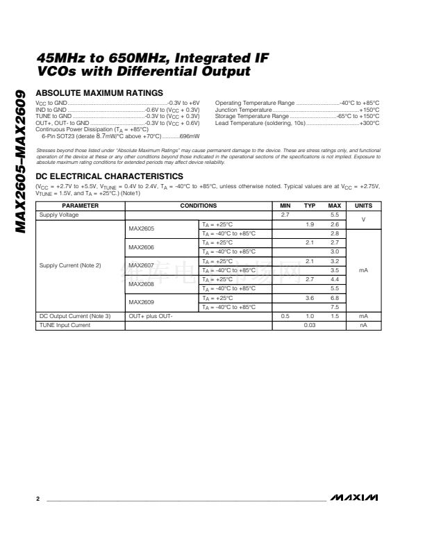 MAX2605鈥揗AX2609