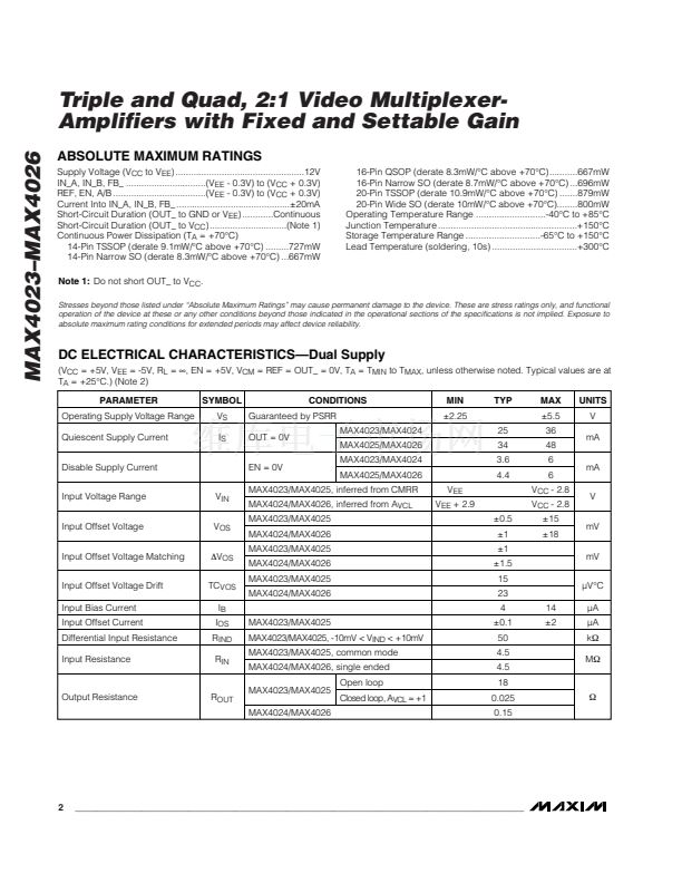 gain. The MAX4024/MAX4026 are triple and quad 2:1