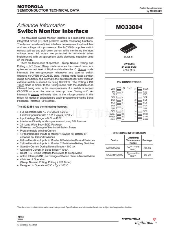 The MC33884 Switch Monitor Interface is a monolithic silicon