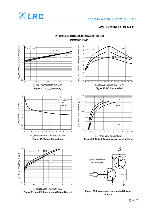external resistor bias network. The BRT (Bias Resistor Transistor) contains a single transis-