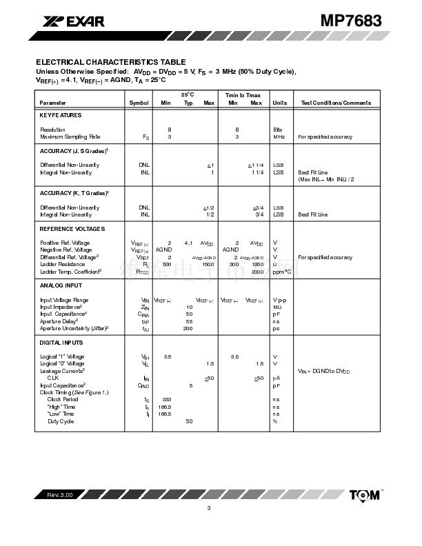 FORFN IUHTXHQF\ RI 0+] DW D VXSSO\ YROWDJH RI YROWV