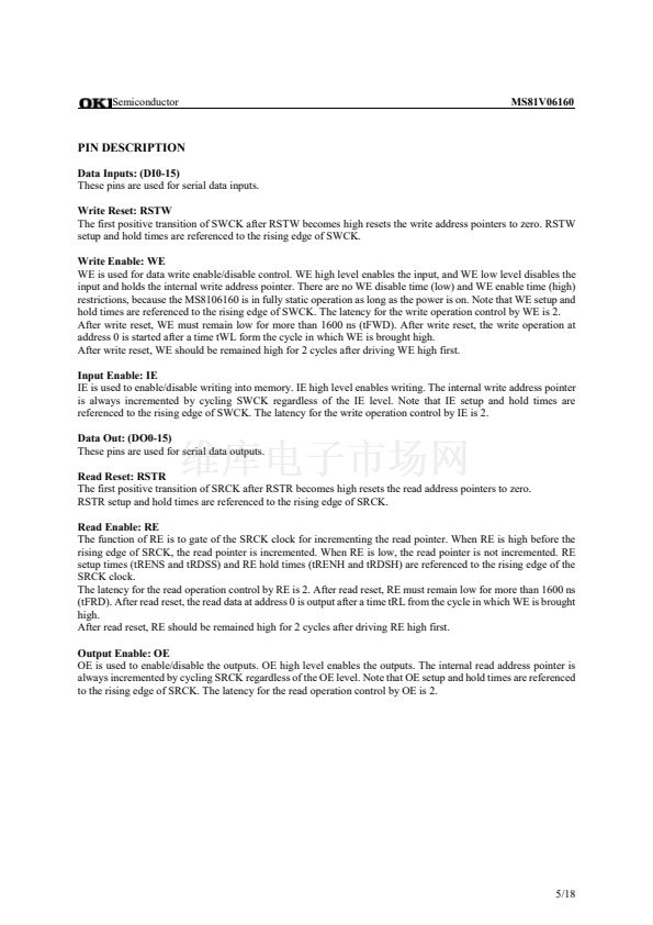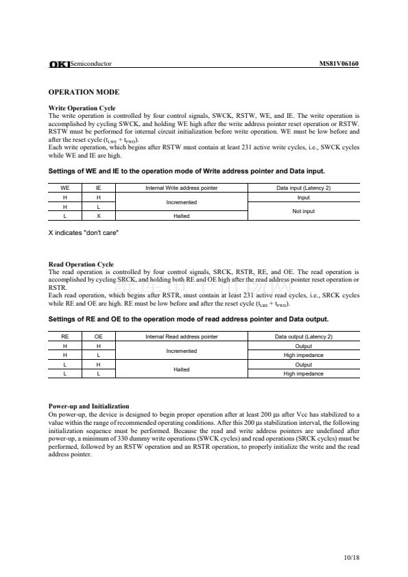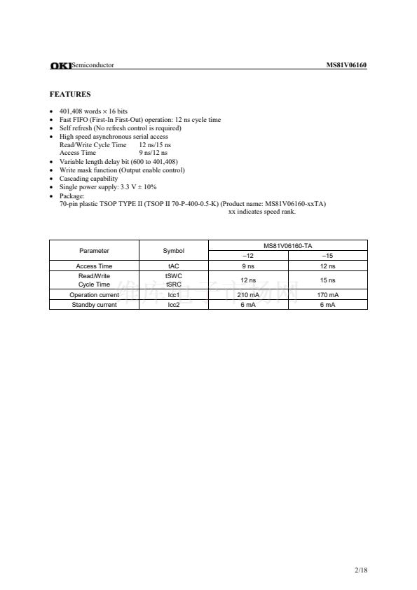 The MS81V06160 is a 6Mb FIFO (First-In First-Out) memory designed for 401,408-words