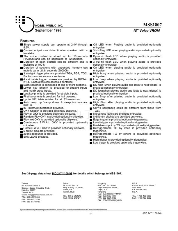 See 39-page data sheet PID 247*** 09/96 for details which belongs to MSS1207.