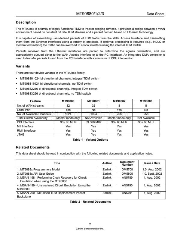 Zarlink, ZL and the Zarlink Semiconductor logo are trademarks of Zarlink Semiconductor Inc.