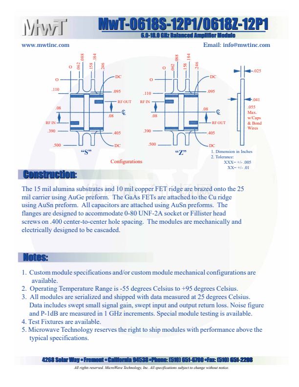 All rights reserved. MicroWave Technology, Inc. All specifications subject to change without notice.