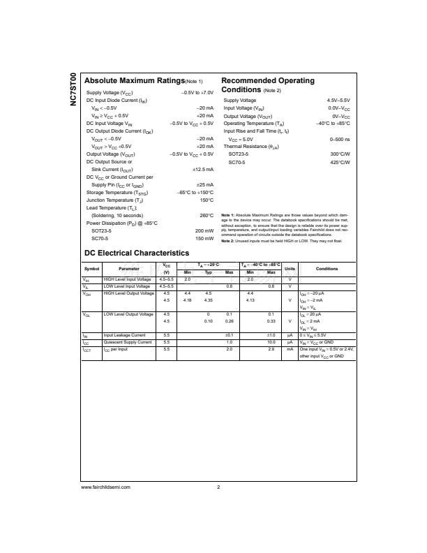 The NC7ST00 is a single 2-Input high performance CMOS