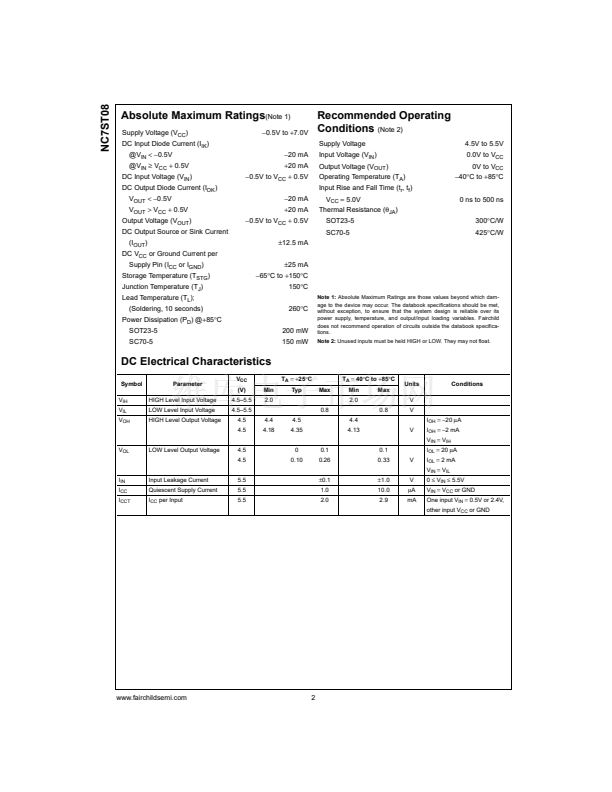 The NC7ST08 is a single 2-Input high performance CMOS
