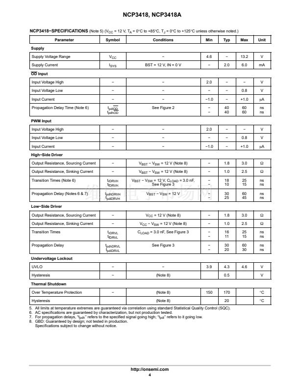 The NCP3418A is identical to the NCP3418 except that there is no