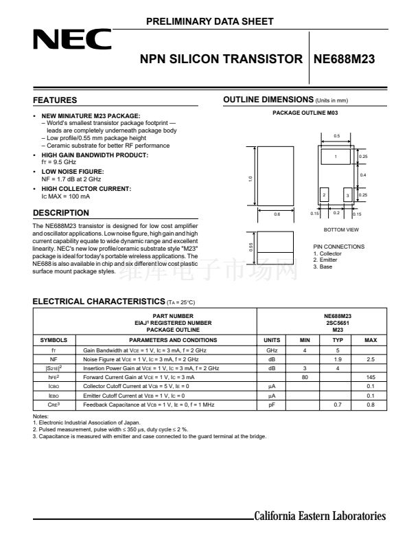 The NE688M23 transistor is designed for low cost amplifier