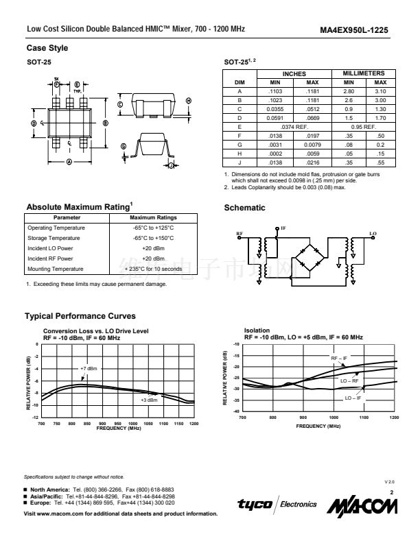 • Low Cost Silicon Double Balanced HMIC⑩ Mixer, 700 - 1200 MH...