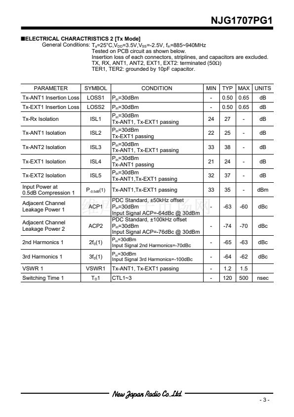 NJG1707PG1 is a front-end IC for a digital cellular phone of