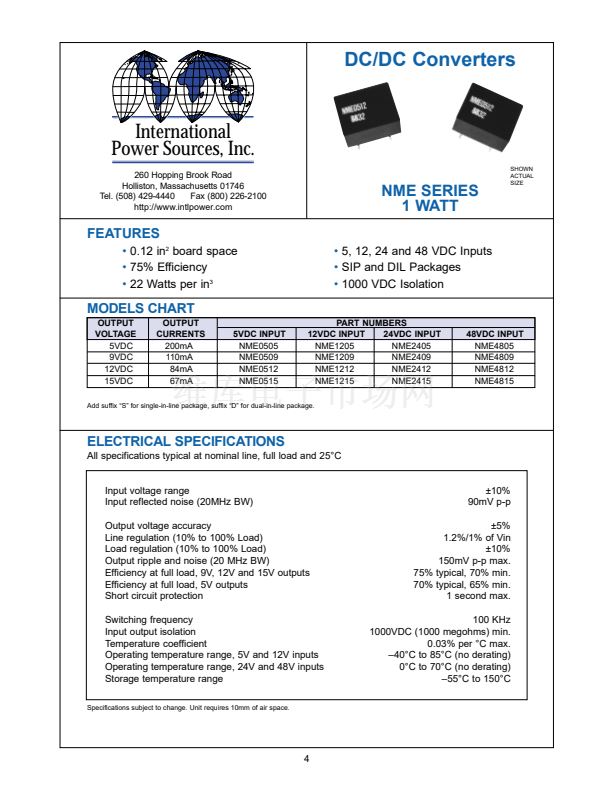 • DC/DC Converters NME SERIES 1 WATT