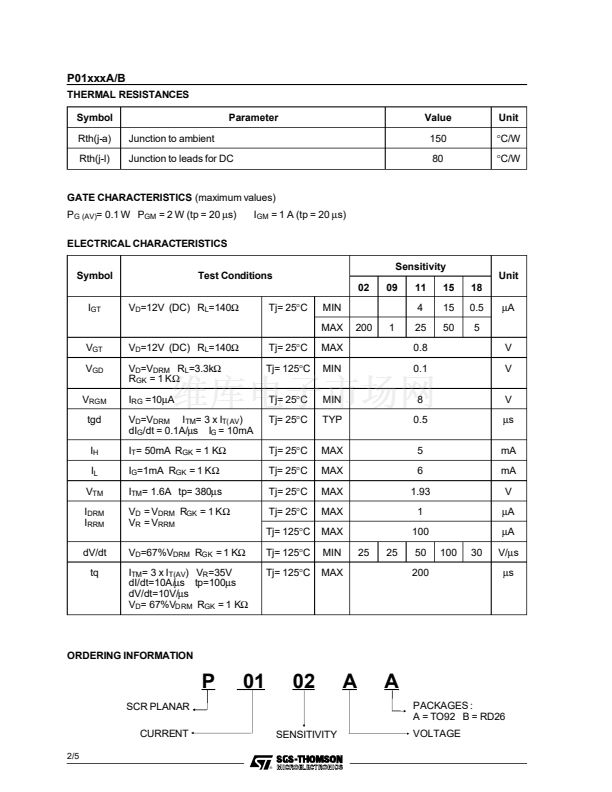 The P01xxxA/B series of SCRs uses a high