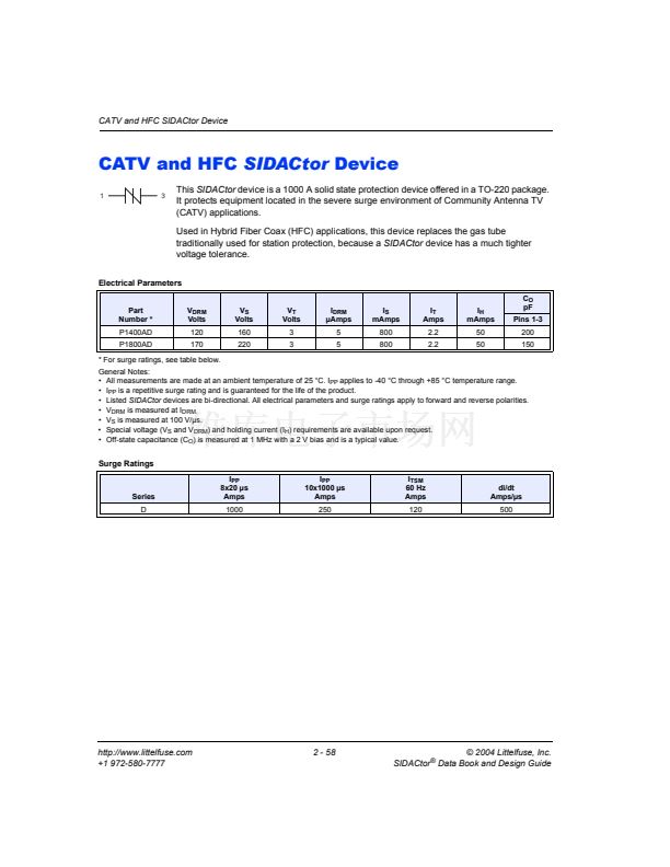 devices are bi-directional. All electrical parameters and surge ratings apply to forward and reverse polarities.