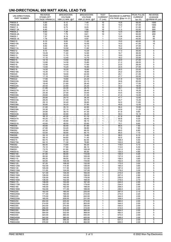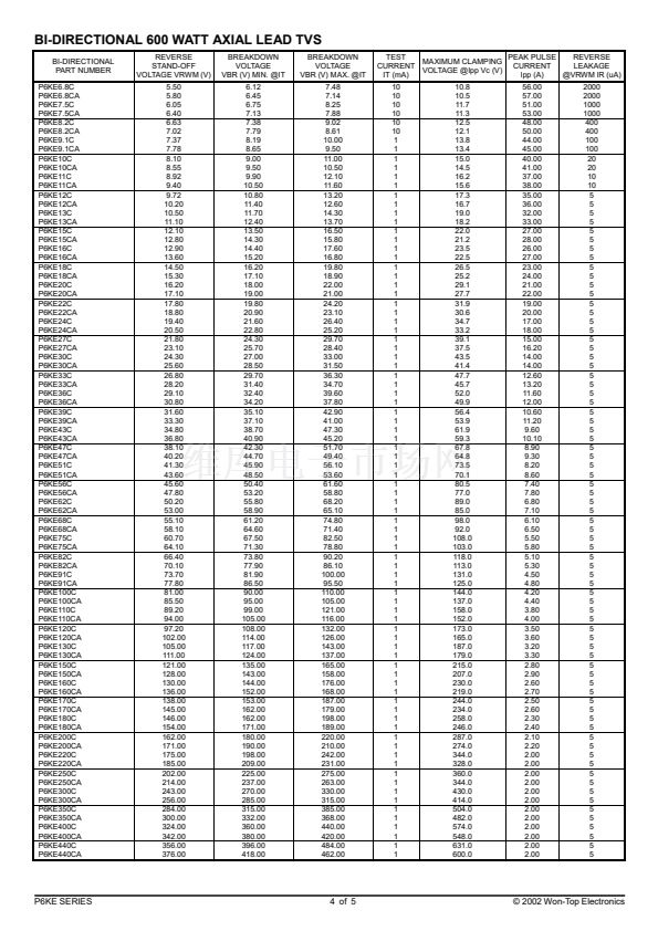 • 600W TRANSIENT VOLTAGE SUPPRESSORS