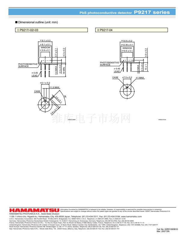P9217 is a PbS photoconductive detector with greatly improved stability and resistance to high temperatures as compared with conventional types.