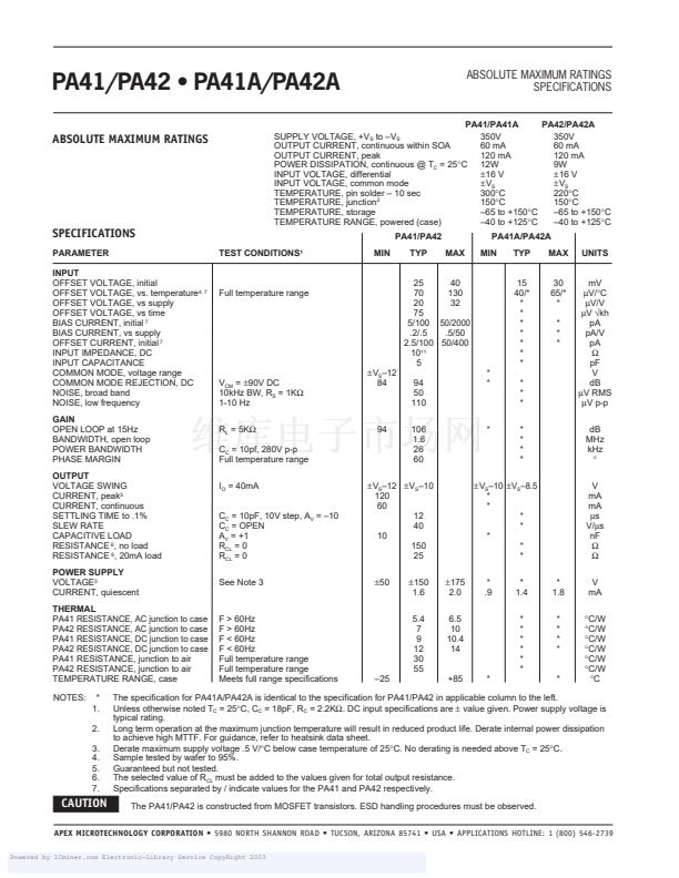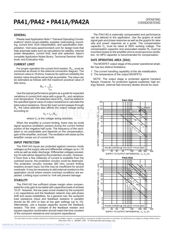 The PA41/42 are high voltage monolithic MOSFET opera-