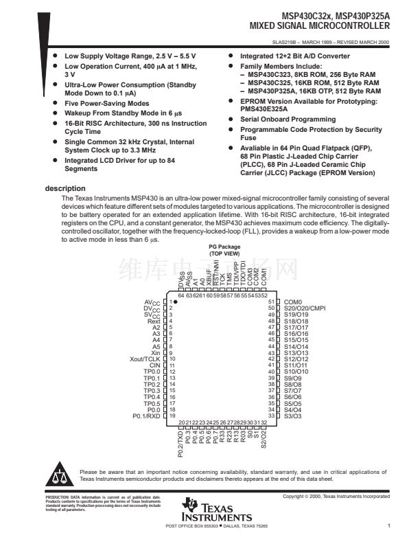 鈥?MSP430P325A, 16KB OTP, 512 Byte RAM