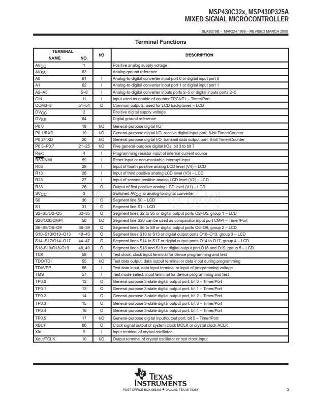 MSP430C32x, MSP430P325A