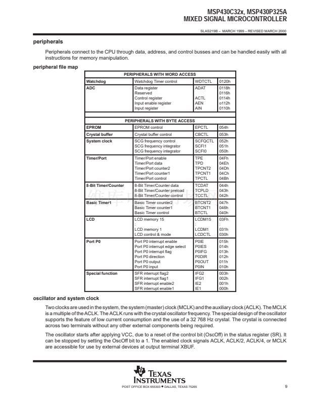 鈥?MSP430C323, 8KB ROM, 256 Byte RAM