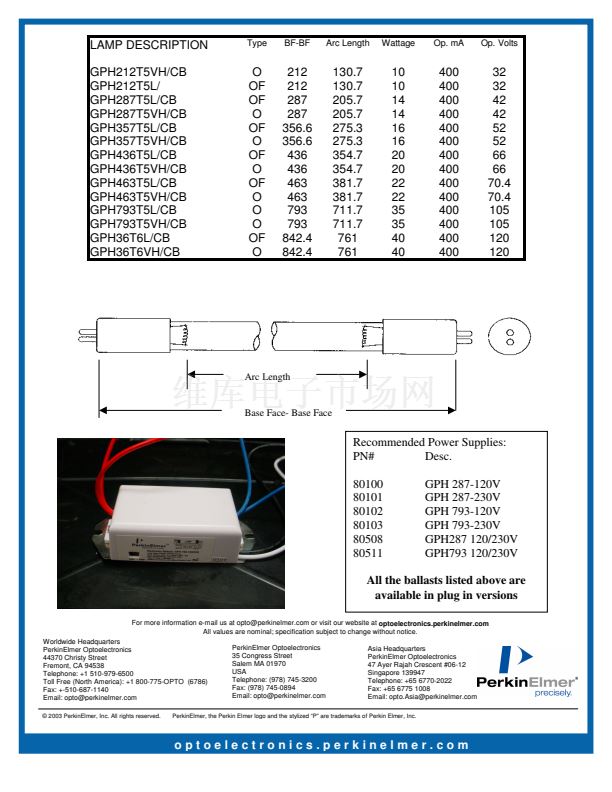 PerkinElmer lamps are available in