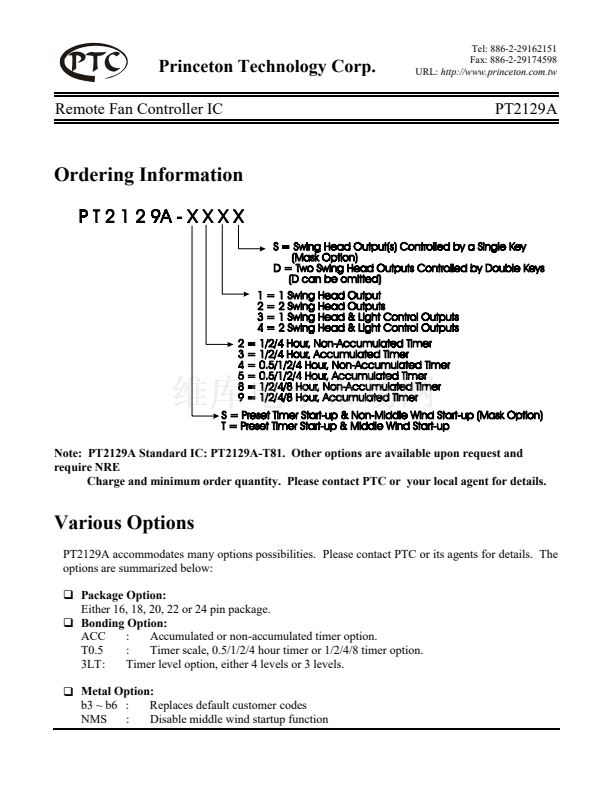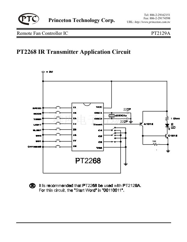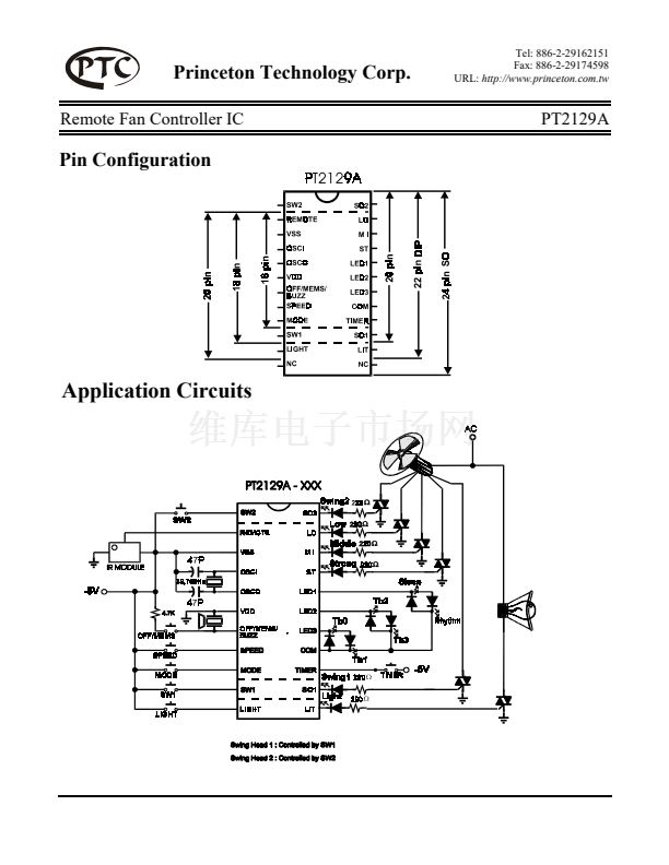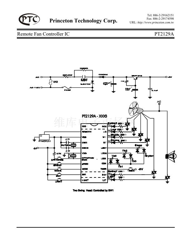 PT2129A is a high performance electronic fan controller LSI. Speed control, on-timer, off-timer,