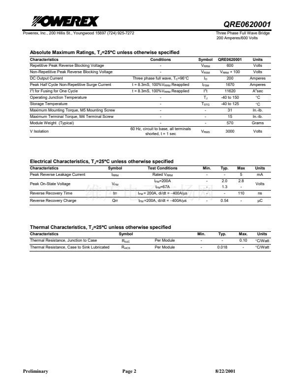 Powerex Three-Phase Full Wave