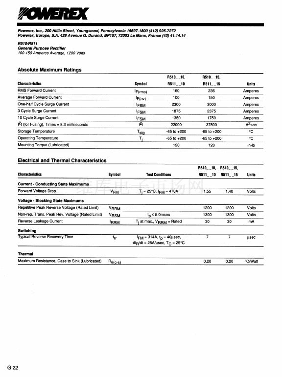 General Purpose Rectifier (100-150 Amperes Average 1200 Volt...
